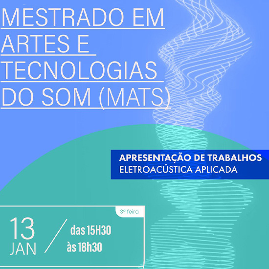 Os estudantes do Mestrado em Artes e Tecnologias do Som (MATS) apresentam os seus projetos no dia 13 de janeiro, entre as 15h30 e as 18h30. A sessão dedica-se à apresentação de trabalhos desenvolvidos no âmbito da unidade curricular de Eletroacústica Aplicada.