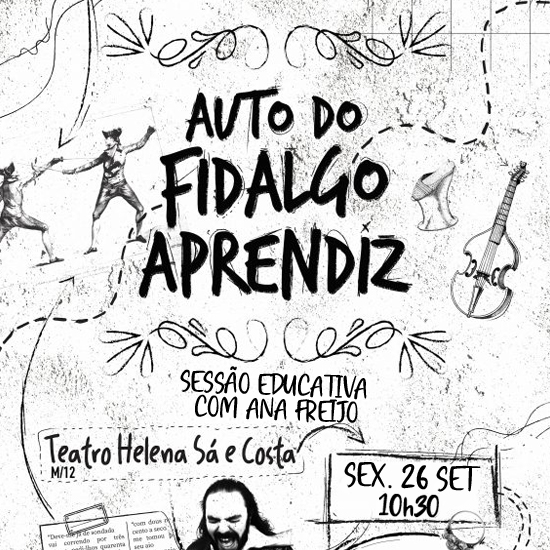 Na próxima sexta-feira, dia 26 de Setembro, o Auto do Fidalgo Aprendiz, de D. Francisco Manuel de Melo, será transformado numa jornada pedagógica, quer para os estudantes, quer para a nossa personagem principal, o fidalgo D. Gil Cogominho. Venham assistir à representação da primeira jornada do auto, onde aprenderemos esgrima sem espada, dança sem música e poesia sem declamação... Mas será isto possível? Ana Freijo, a nossa guia nesta sessão especial, subirá ao palco, ao lado de D. Gil e dos seus mestres, para ajudar-nos a perceber esta curiosa formação.